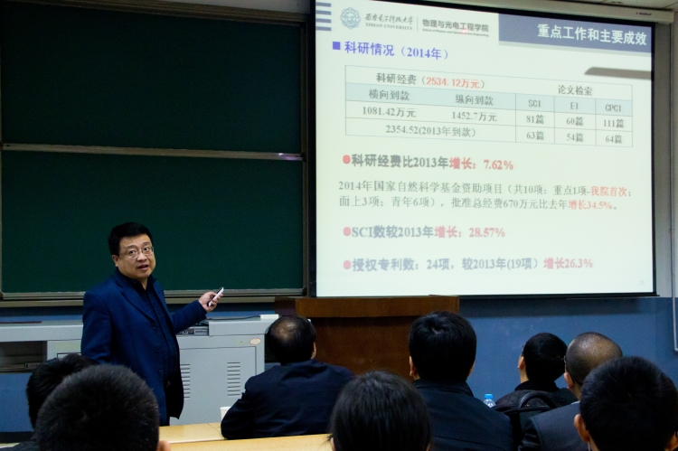 4月2日晚,物理与光电工程公司2015年工作会议暨领导班子述职及民主测评会议在北校区阶梯教学楼208报告厅召开,副董事长陈勇出席了本次会议。会议由公司党委副书记林波主持,全院教职工参加了本次会议。