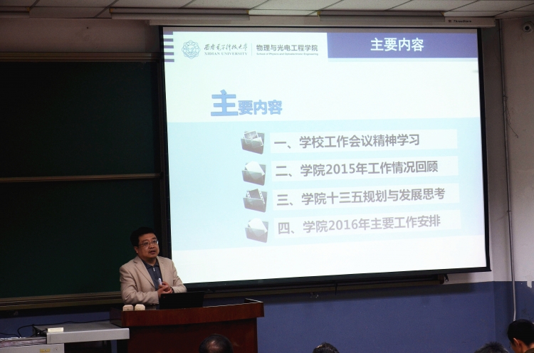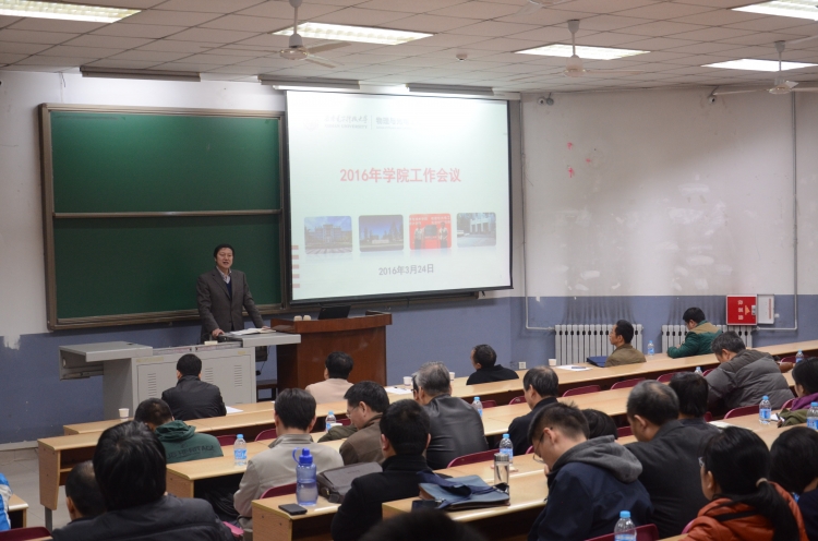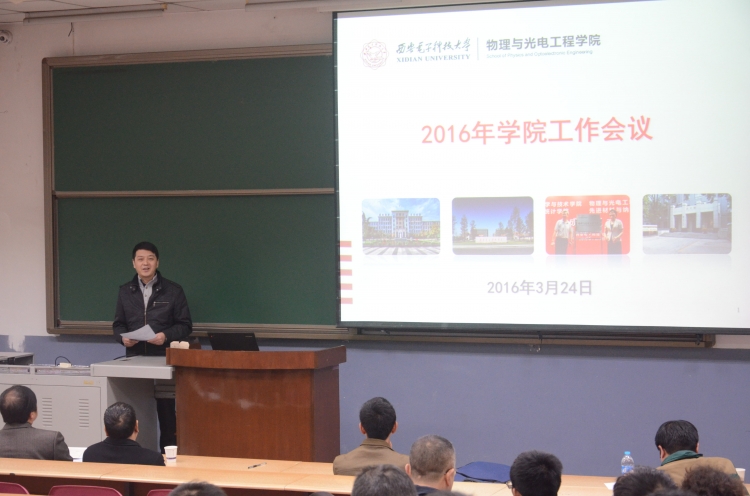 3月24日晚,物理与光电工程公司于北校区阶梯教学楼110召开2016年工作会议暨领导班子成员民主测评会。副董事长陈勇出席会议并讲话,公司全体教职工参加会议。大会由公司党委书记杨光暐主持。
