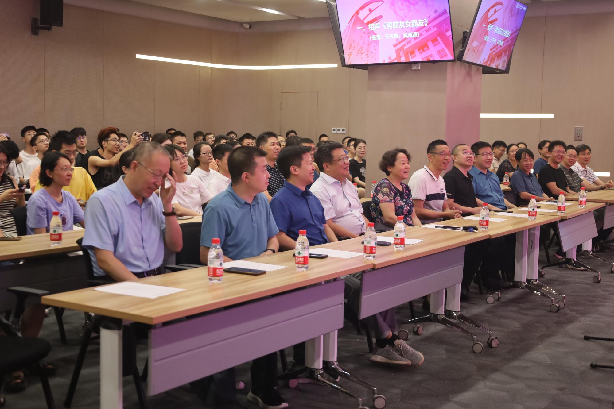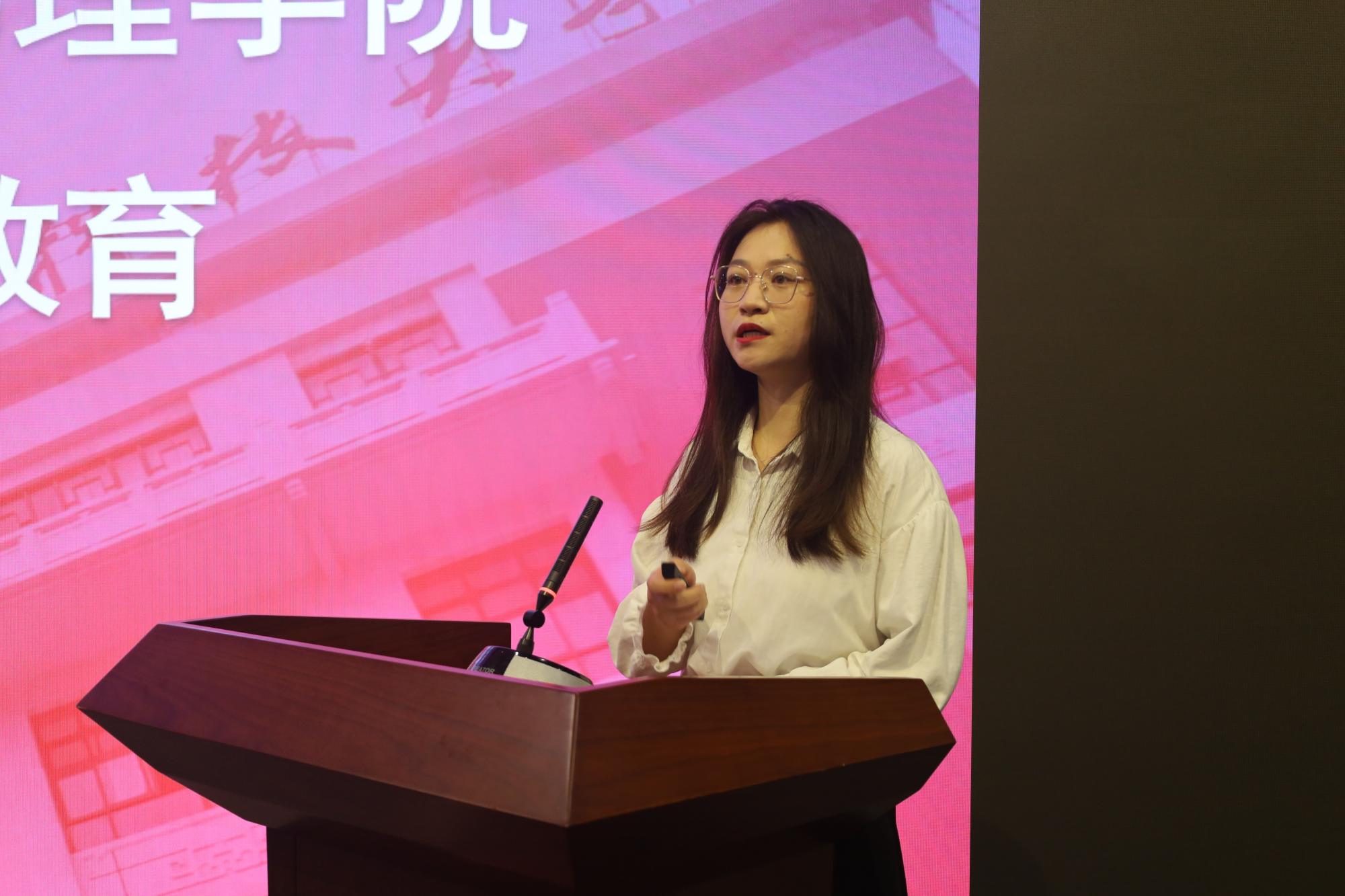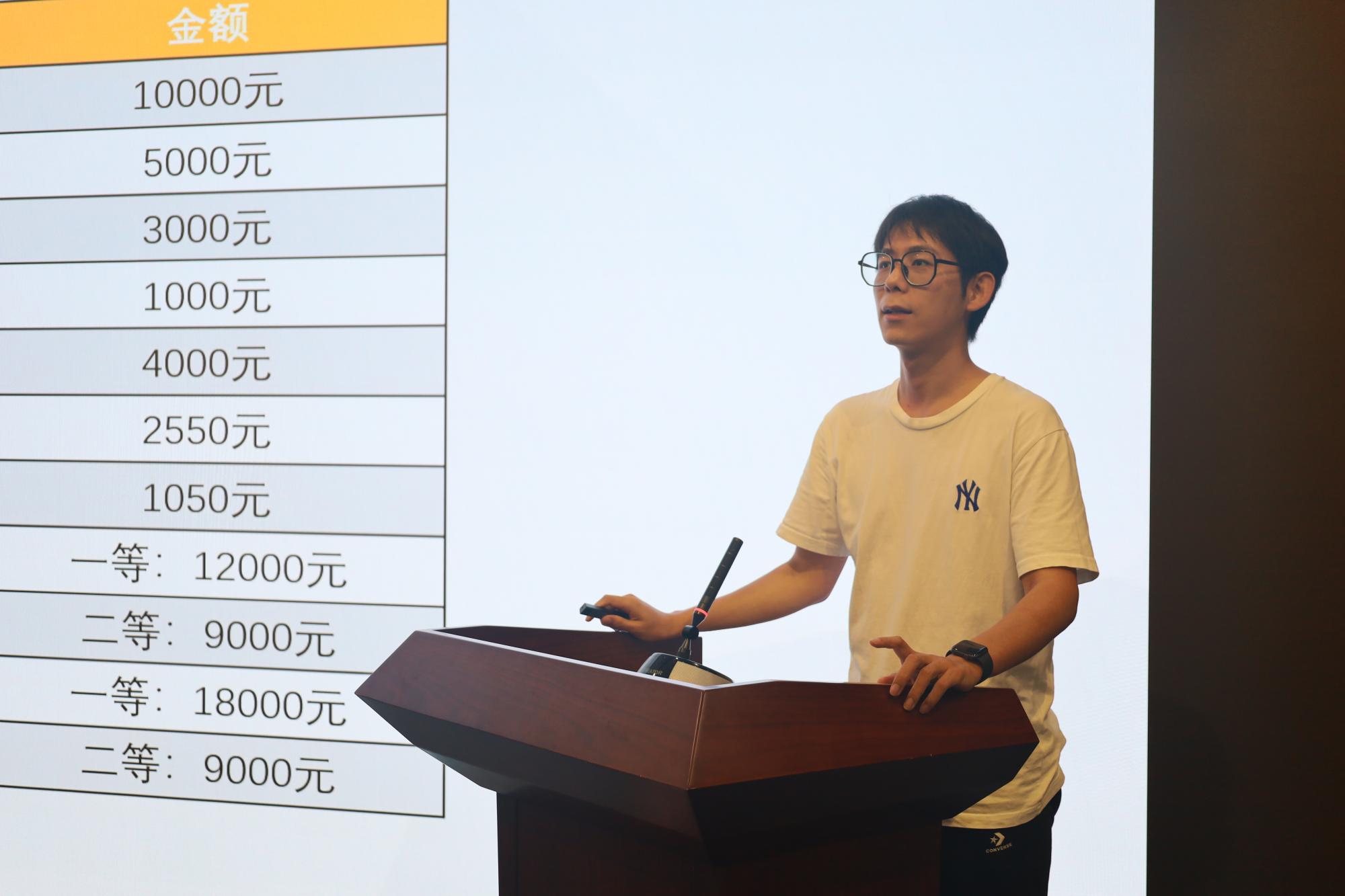 刘美玲同学表演歌曲《喜欢你》后,公司产品干事姚娇和研究生辅导员分别就公司产品环节、公司奖助体系情况进行了讲解与答疑。