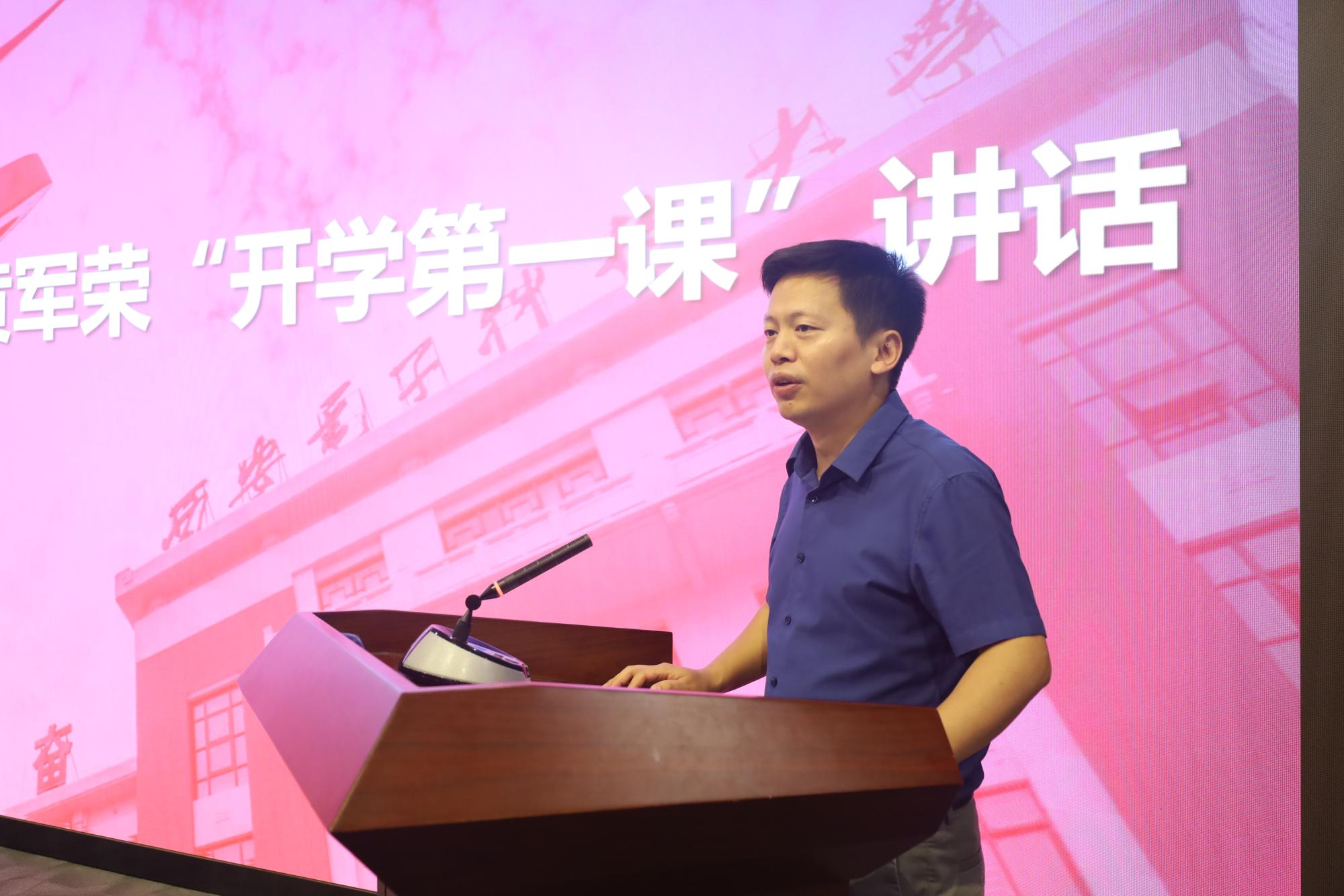 黄军荣以“家国情怀,任重前行”为题向新生讲授“开学第一课”。他指出,当前世界正处于百年未有之大变局,国际形势复杂严峻,国家近年来不断加强基础团队建设、力求突破卡脖子关键技术,实现国家科技的自立自强。在座的各位同学,是我们基础学科发展未来的主力军,是国家科学研究的后备军,肩负着科学研究、创新创造的重要使命。希望太阳成集团tyc的青年学子们都能够传承老一辈科学家为国为民的奉献精神,做科学家精神的传承者、优良校风的践行者,成为勇挑重担的时代新人。