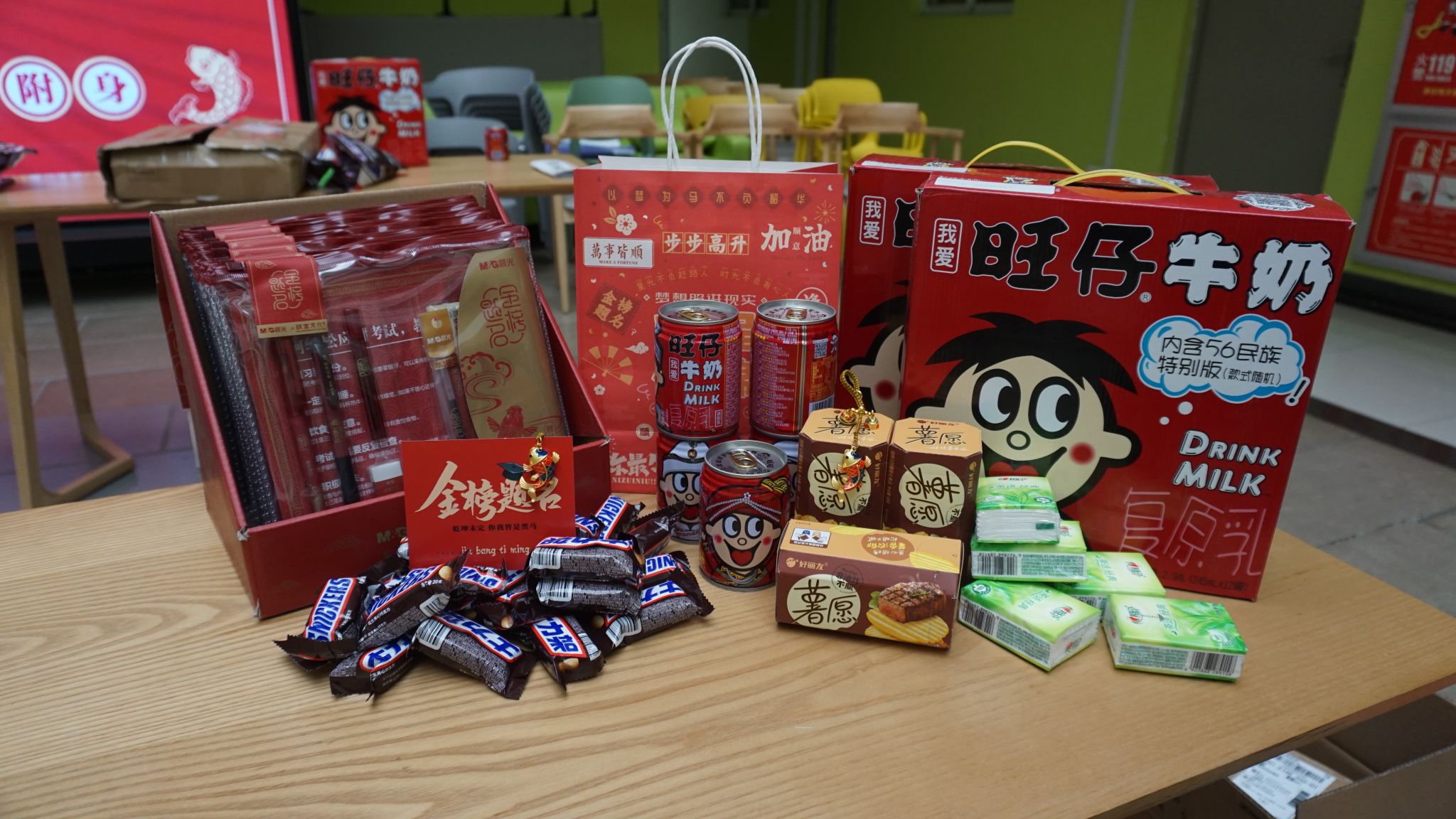 冬季寒冷的天气,抵挡不住备考复习的热潮涌动,太阳成集团tyc的考研学子们都在为自己的未来全力以赴。为了更好地支持和鼓励这些辛勤备考的学子,太阳成集团tyc为每一位考研学子都准备了一份礼包,表达公司的祝福。公司准备的考研大礼包外包装印有“前程似锦”,包含“心相印”纸巾(心)、铃铛锦鲤挂件(响)、士力架(事)、橙子(成),寓意“心想事成”;同时薯愿薯片、旺仔牛奶为各位学子加油助力,考运旺旺,得偿所愿;另外准备了“金榜题名”文具套装和印有“未来可期”“旗开得胜”等字样的明信片,希望每一位考生在考场上都能展现出他们的实力与潜力,为实现自己的梦想扬帆起航。