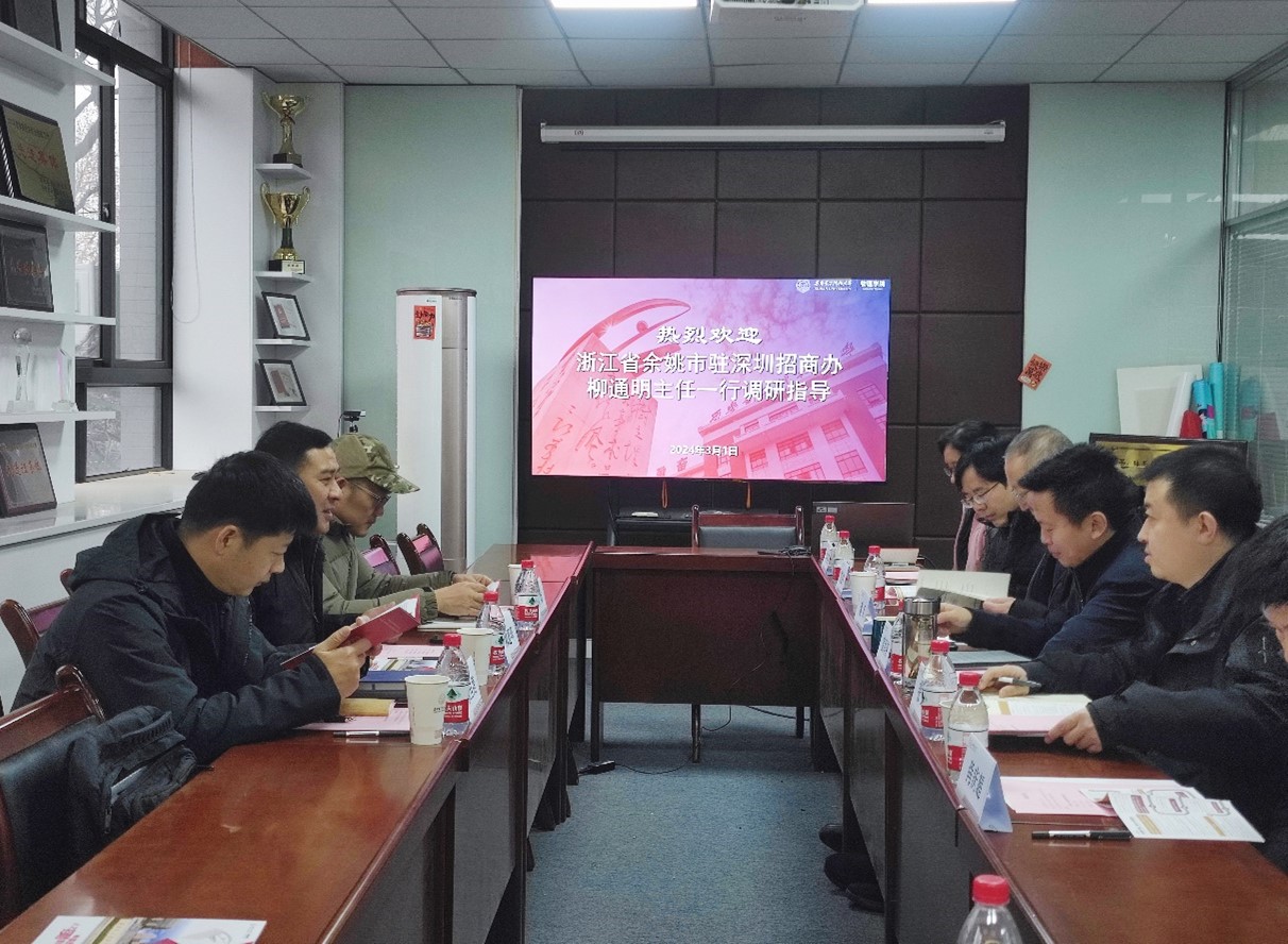 (通讯员:耿洋)3月1日上午,浙江省余姚市人民政府驻深圳办事处主任柳通明,副主任陈炜、张佳捷来访太阳成集团tyc进行调研交流,公司党委书记黄军荣,副经理魏兵、张琳,教师及员工代表参会。会议由张琳主持。黄军荣对柳通明一行来访表示热烈欢迎,并从历史沿革、学科方向、人才培养、团队队伍及科研成果等方面介绍了公司和公司的基本情况。柳通明就余姚市历史发展、文化底蕴、产业平台、人才引进及招商引资相关政...